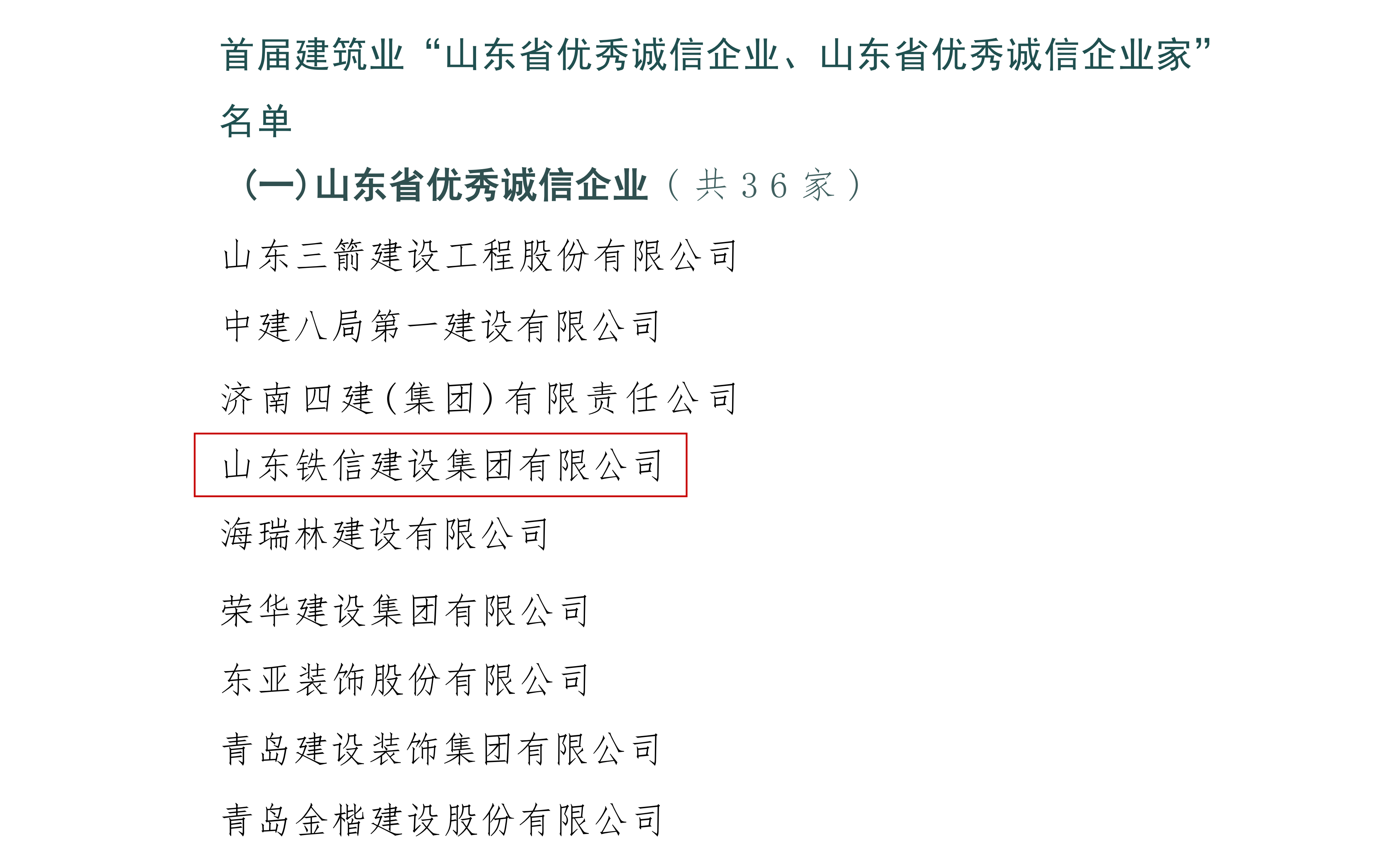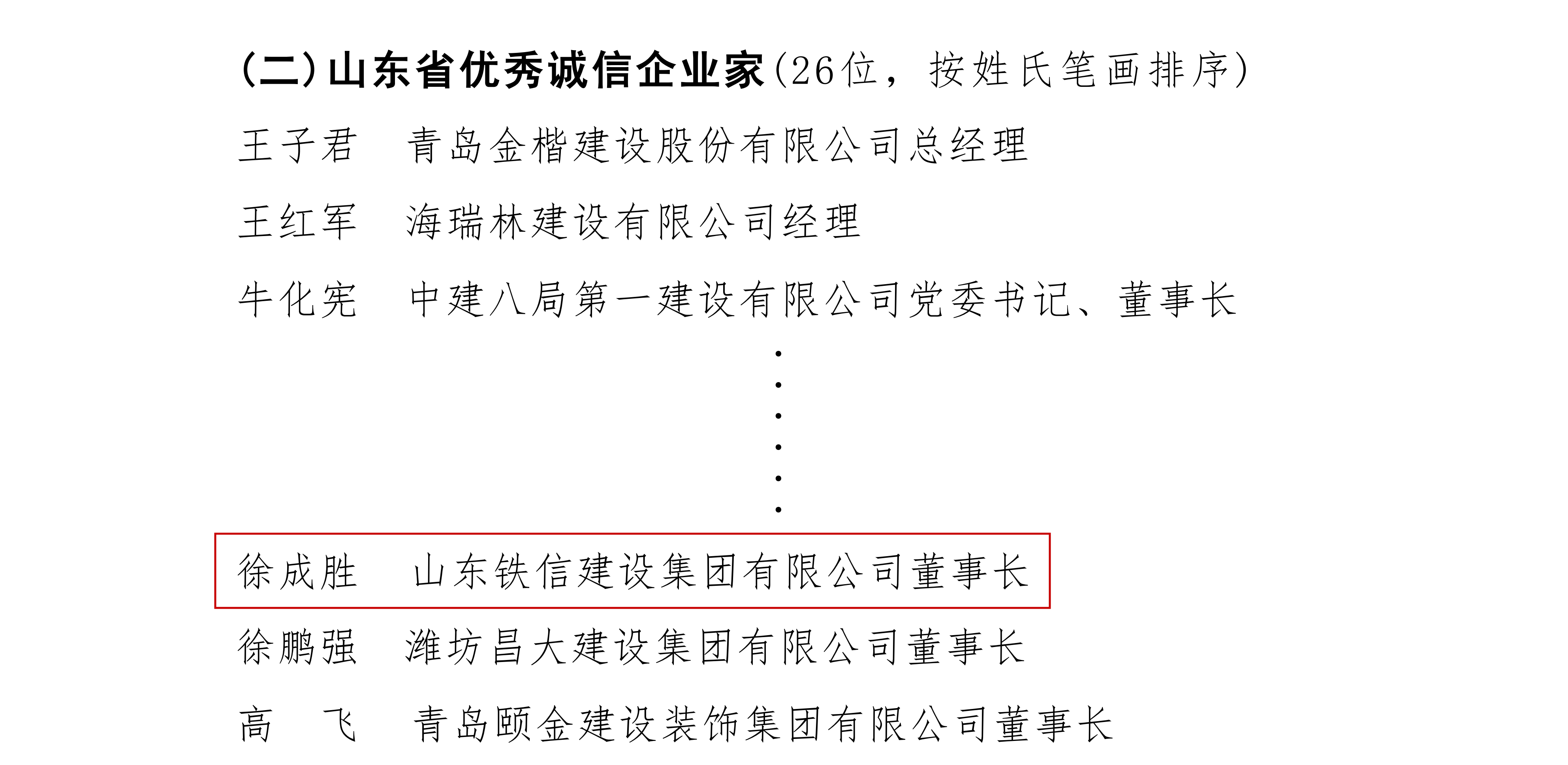 喜报! ——山东铁信建设集团荣膺省级诚信殊荣 董事长徐成胜获评山东省优秀诚信企业家称号